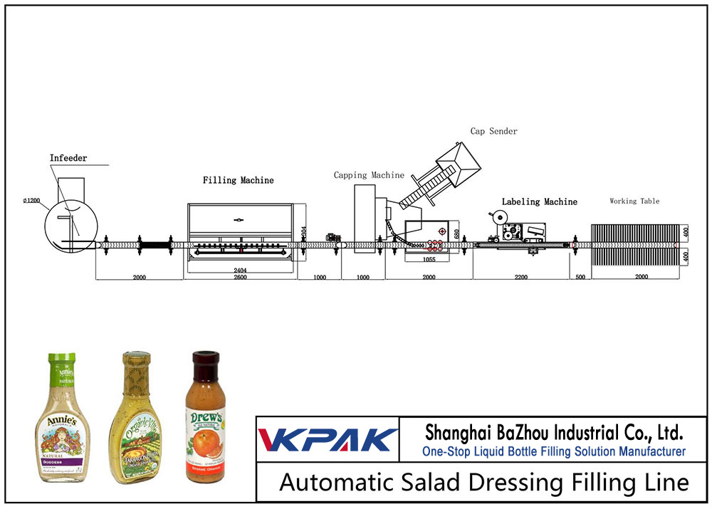 - Likidoak betetzeko makinak Ia edozein industritako produktu sorta zabal baterako fabrikatu daiteke. Produktu horiek uretan oinarritutako, fluxu askeko produktuak edo likido lodi eta likatsuak izan daitezke. Batzuetan, produktu bakar batek gamak lodi eta meheak izan ditzake eta ezaugarri berezi batzuk ere bota ditzake. Elikagaien eta Edarien Industrian, entsaladako janzkera produktu mota hauetako bat da. Entsalada janzteko betegarri likido bat fabrikatu daiteke olio mehea eta ozpina motako janzkerak, krema ganaduak edo janzkera frantsesak, edo baita ere nonbait, tartean dagoena, baina botilan sartu behar duten belar eta espeziez beterik dagoena. . Lodia, lodikoa edo partikulekin, Liquid Packaging Solutions konpainiak entsalatzeko janzteko ekipamendua du.